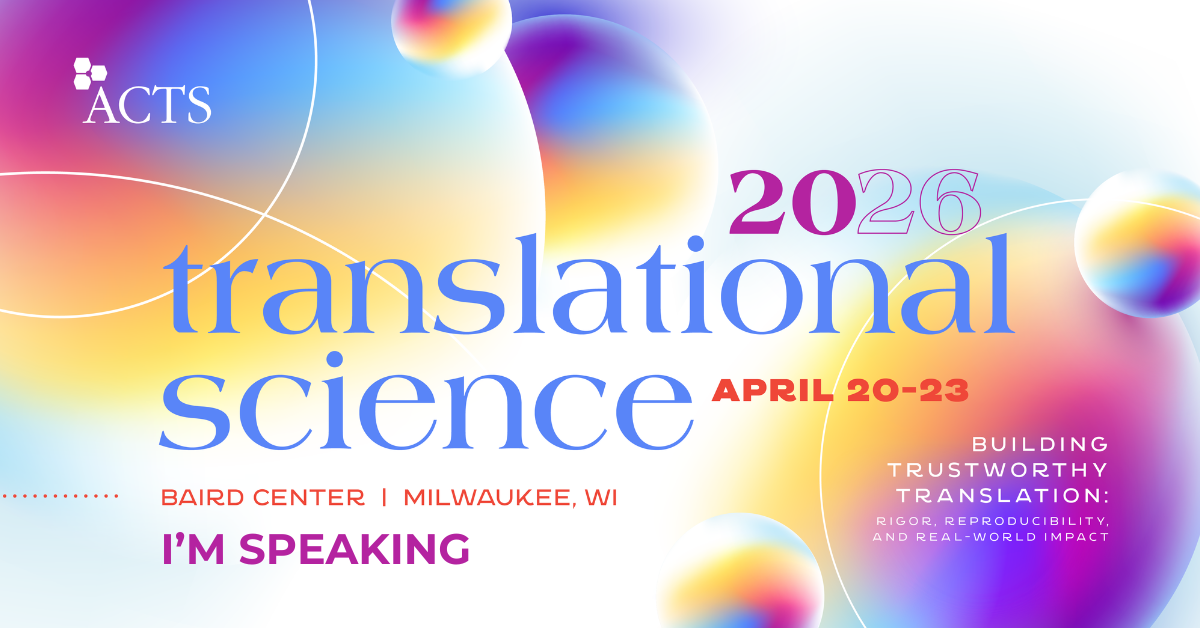 I’m thrilled to share that I will be speaking at Translational Science 2026 in Milwaukee! During my session, [session title], I will explore [brief session highlight] and offer practical insights into [topic]. I look forward to connecting with fellow researchers, clinicians, and thought leaders at the Hilton Milwaukee from April 20–23, 2026 to advance the future of translational science.